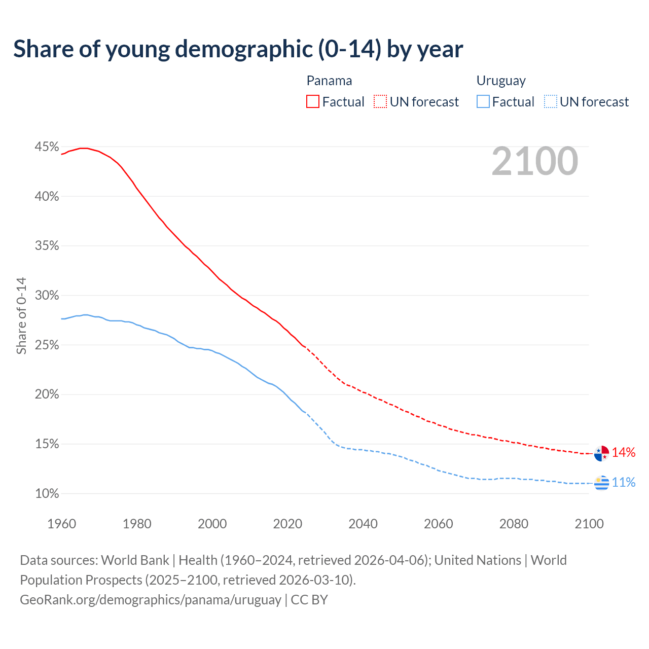 - The share of young demographic (0-15 years old) in Panama is 24.9% vs 18.3% in Uruguay.