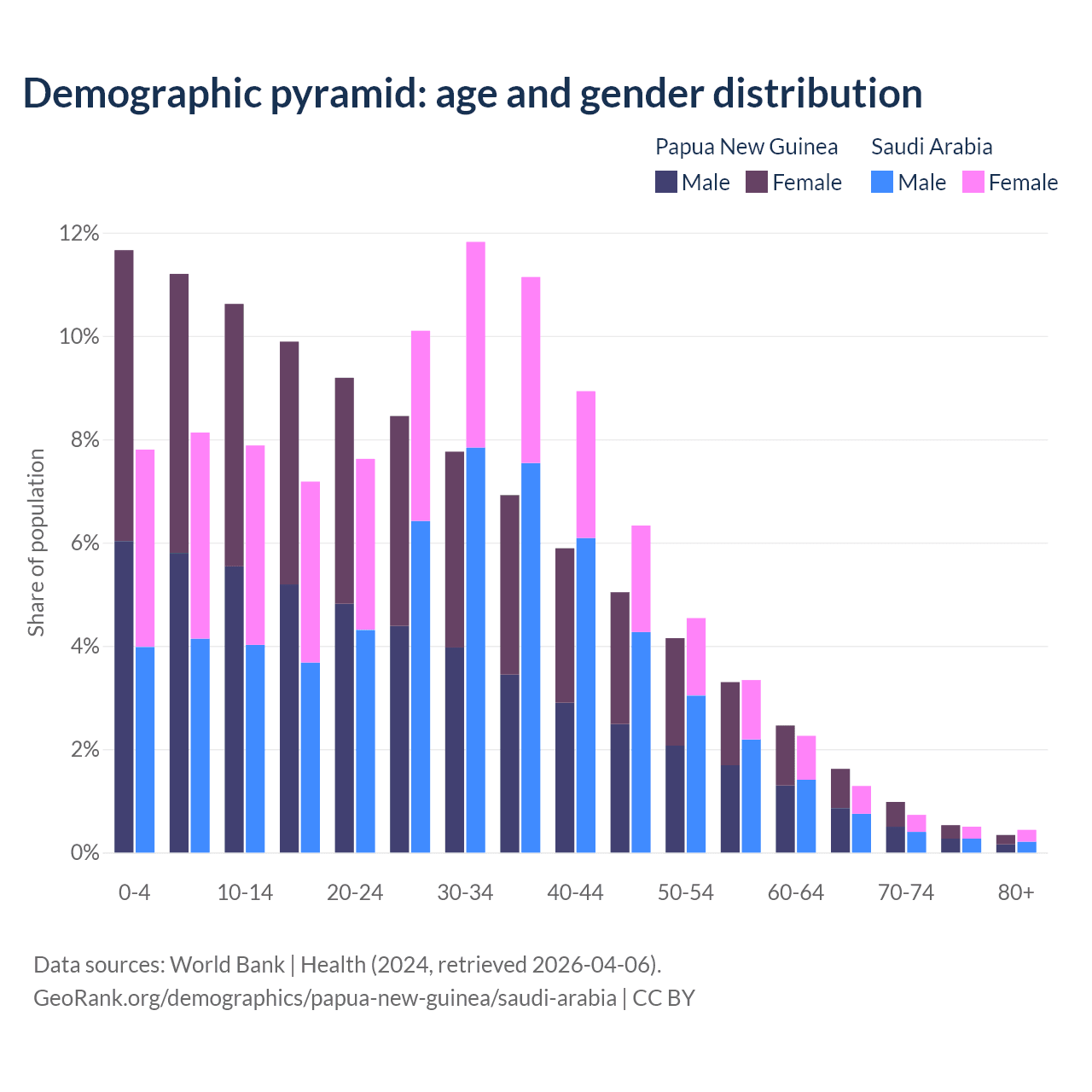 Demographics of Papua New Guinea compared to Saudi Arabia: