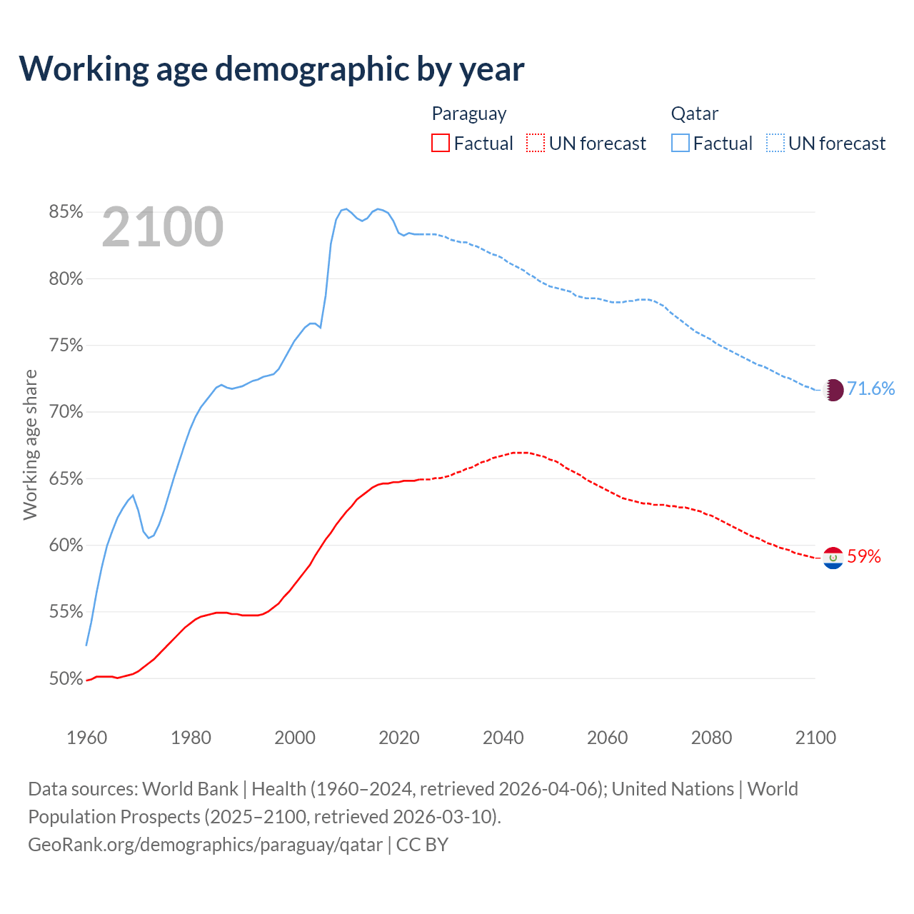 - Paraguay has 4.62M working age adults (aged 15-64) vs 2.5M in Qatar.
