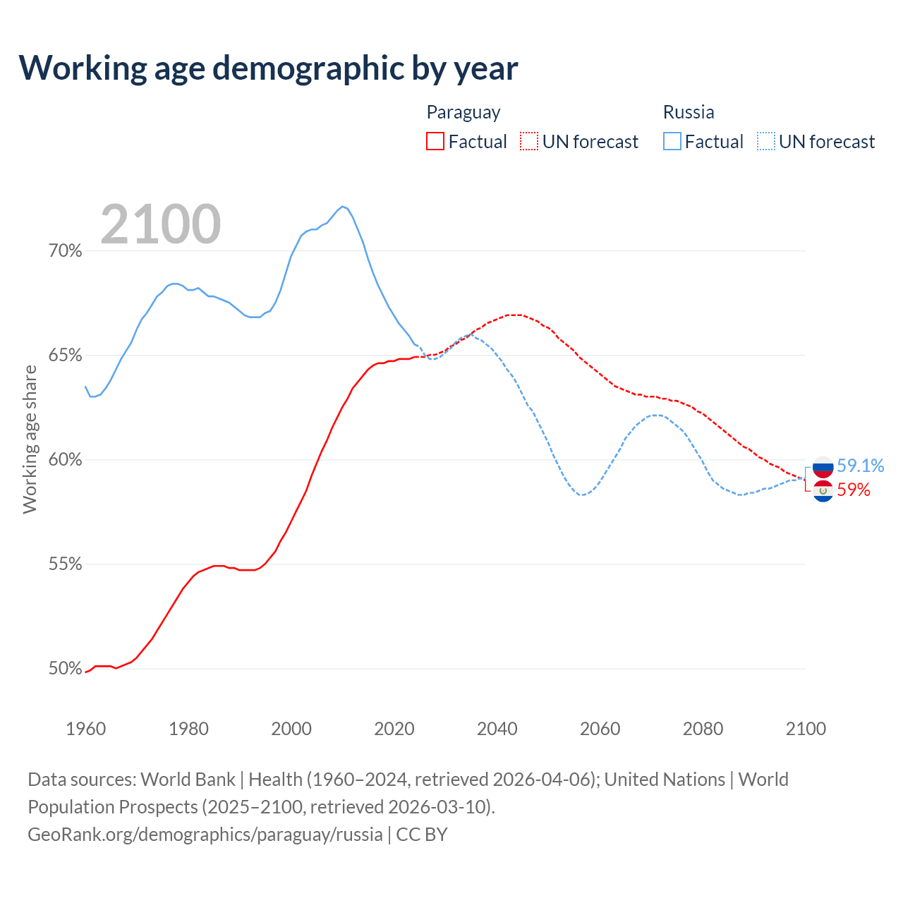 - Paraguay has 4.62M working age adults (aged 15-64) vs 93M in Russia.