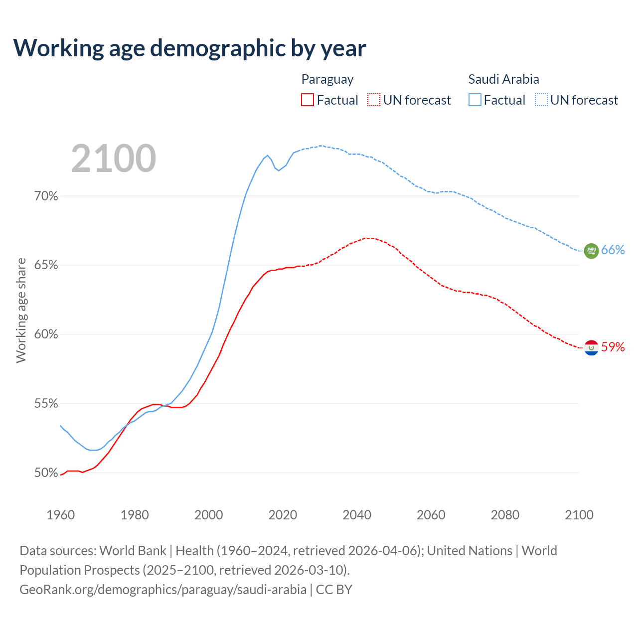 - Paraguay has 4.62M working age adults (aged 15-64) vs 26.9M in Saudi Arabia.