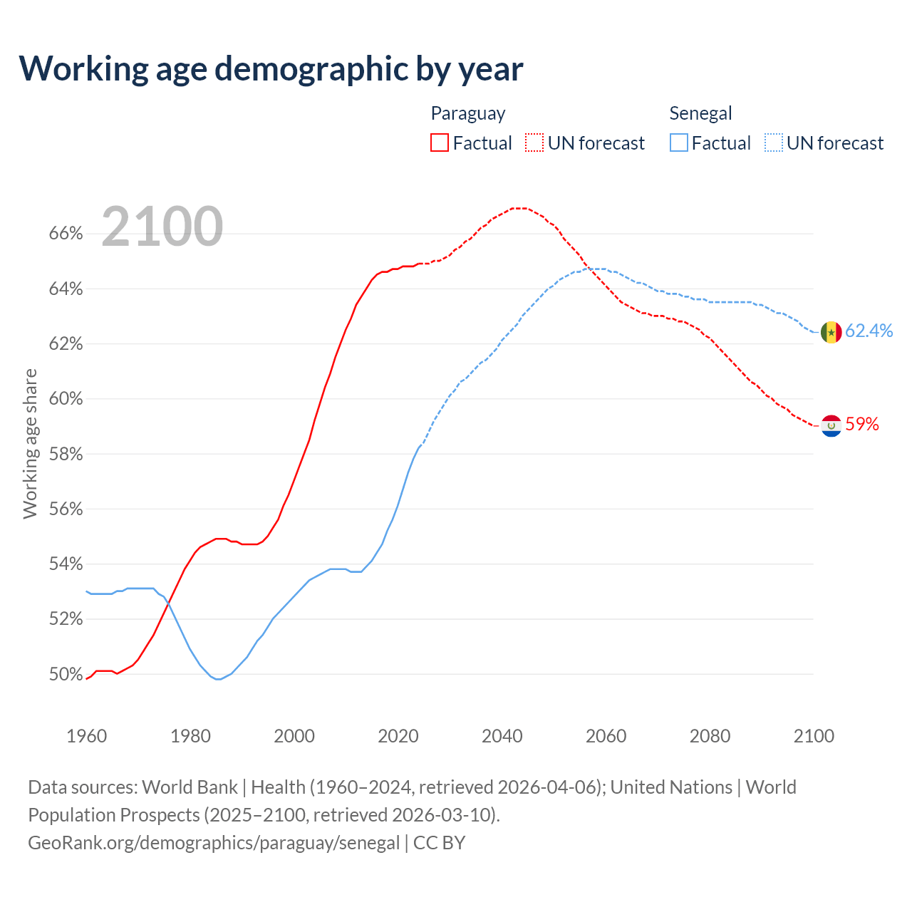 - Paraguay has 4.62M working age adults (aged 15-64) vs 11.3M in Senegal.