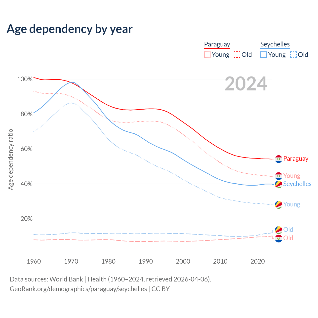 - Paraguay is ranked 118/196 by median age (oldest to youngest) vs 76/196 for the Seychelles.