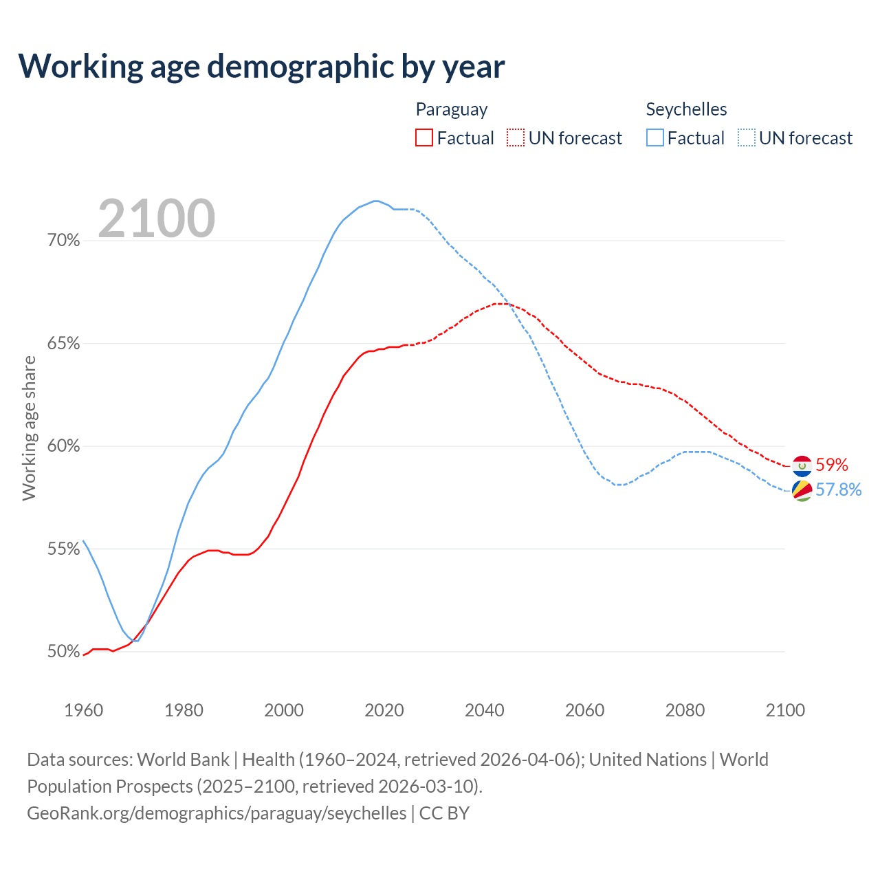 - Paraguay has 4.62M working age adults (aged 15-64) vs 90.3K in the Seychelles.