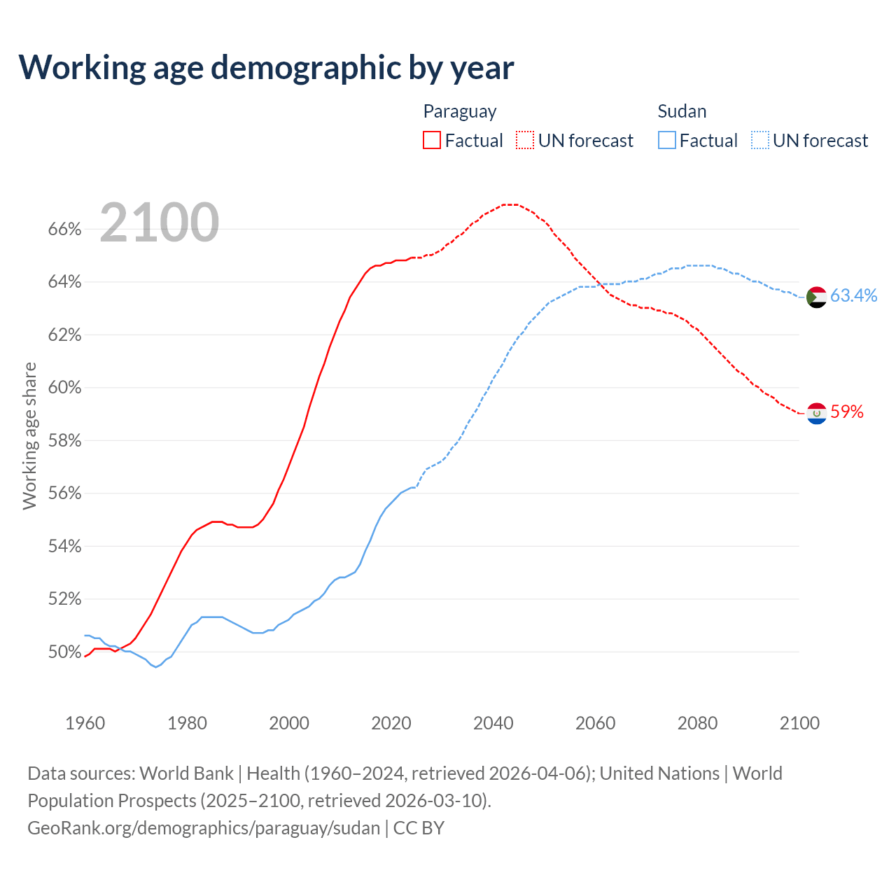 - Paraguay has 4.62M working age adults (aged 15-64) vs 30M in Sudan.