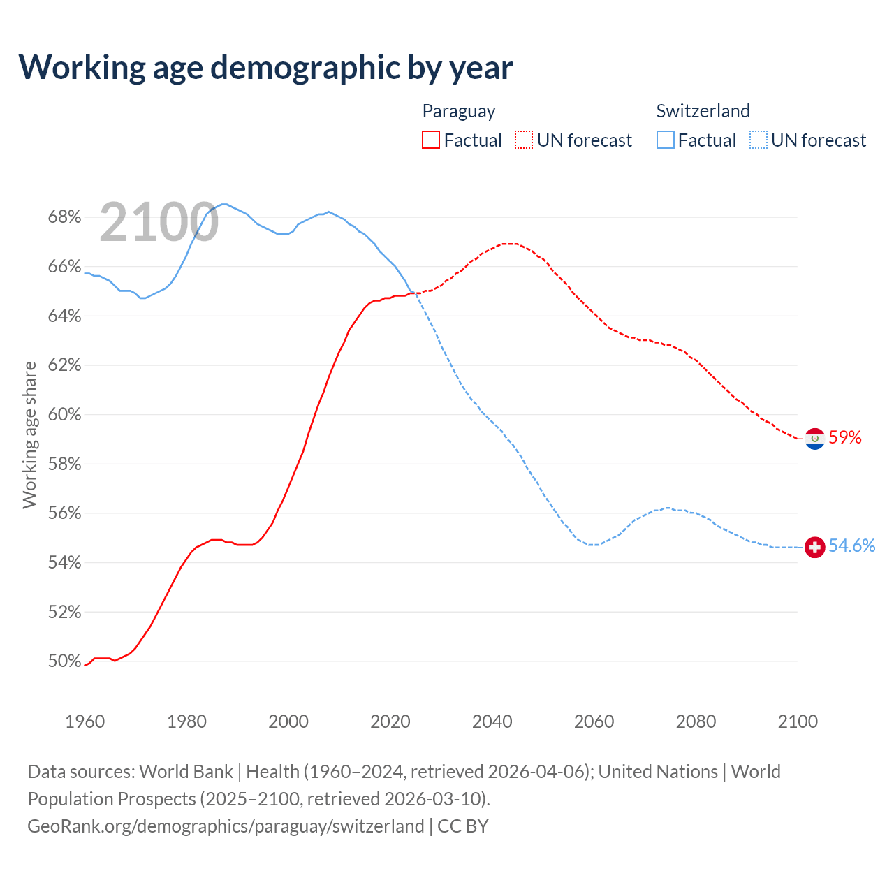 - Paraguay has 4.62M working age adults (aged 15-64) vs 5.92M in Switzerland.