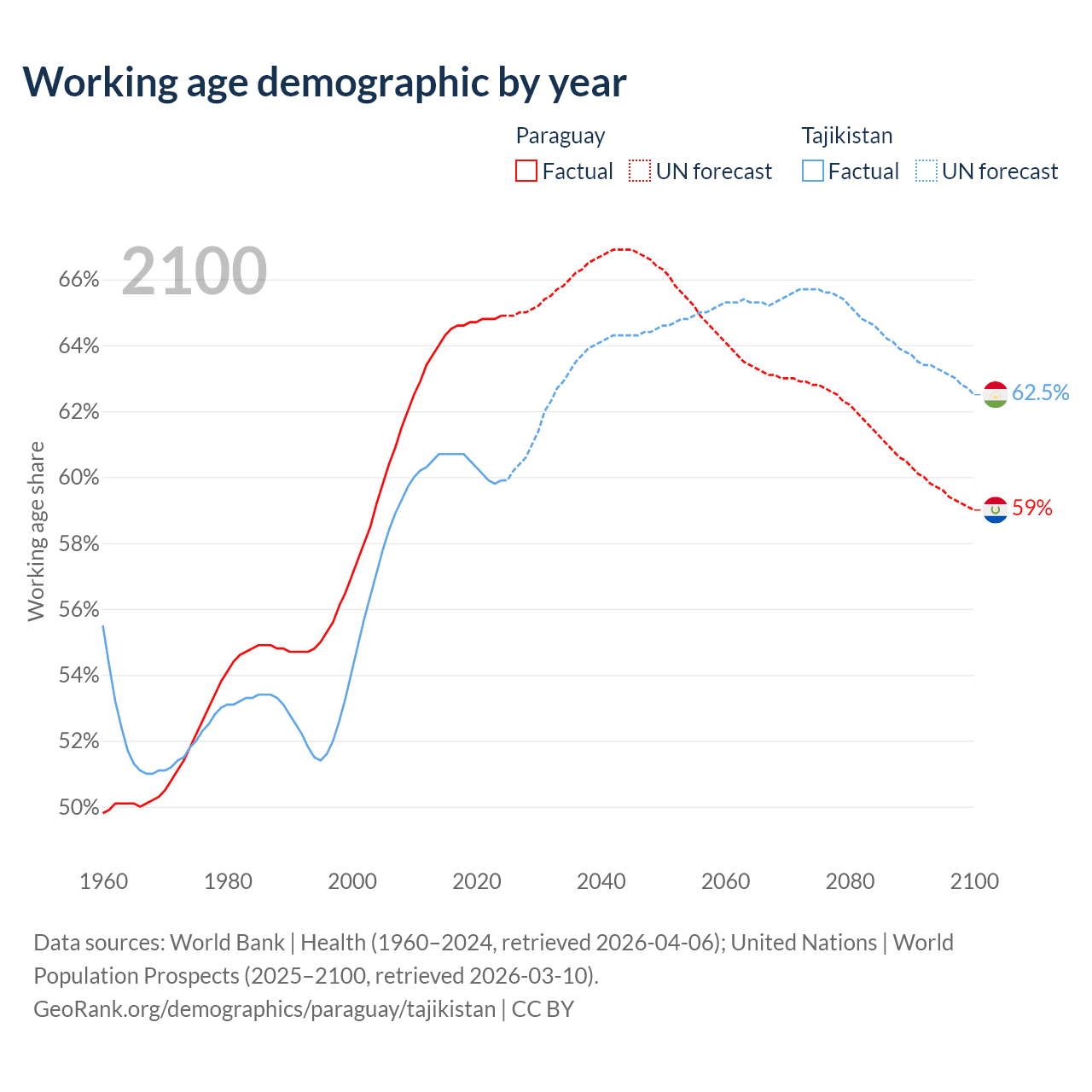 - Paraguay has 4.62M working age adults (aged 15-64) vs 6.61M in Tajikistan.