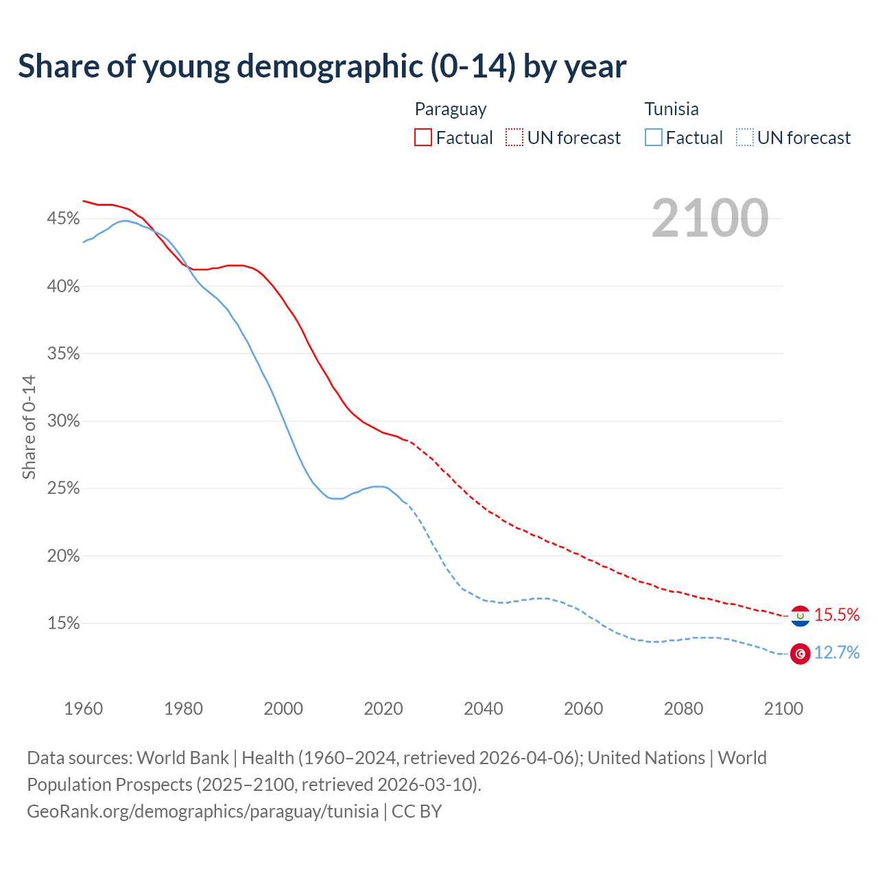 - The share of young demographic (0-15 years old) in Paraguay is 28.6% vs 24% in Tunisia.