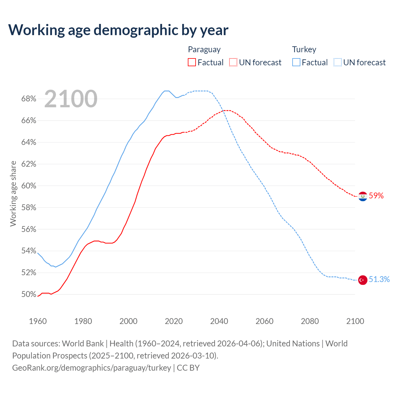 - Paraguay has 4.62M working age adults (aged 15-64) vs 58.7M in Turkey.