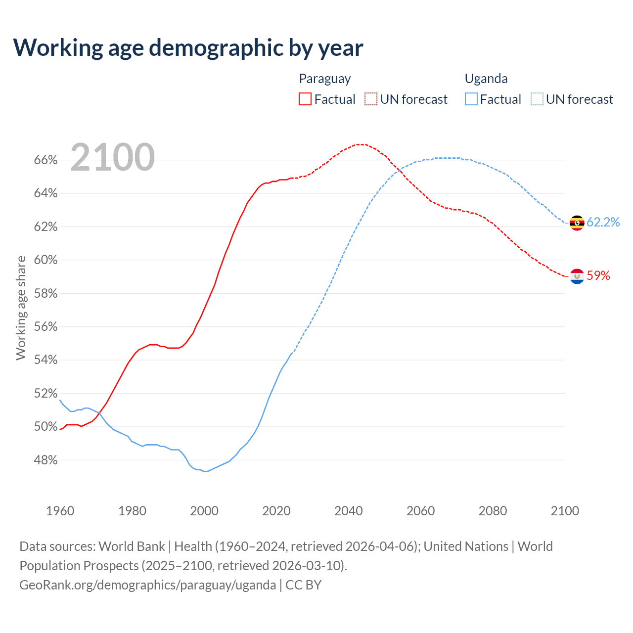 - Paraguay has 4.62M working age adults (aged 15-64) vs 28.9M in Uganda.