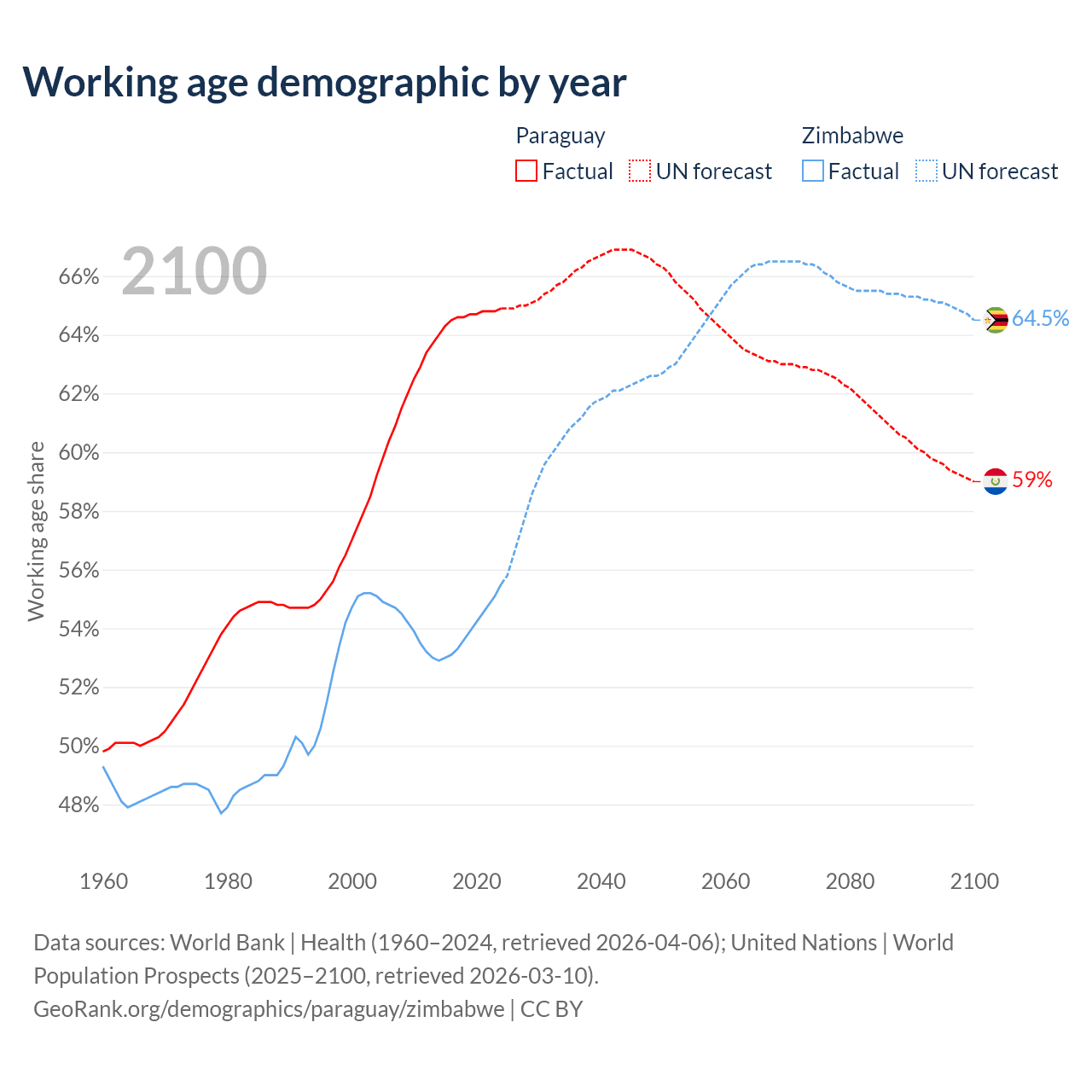 - Paraguay has 4.62M working age adults (aged 15-64) vs 9.64M in Zimbabwe.