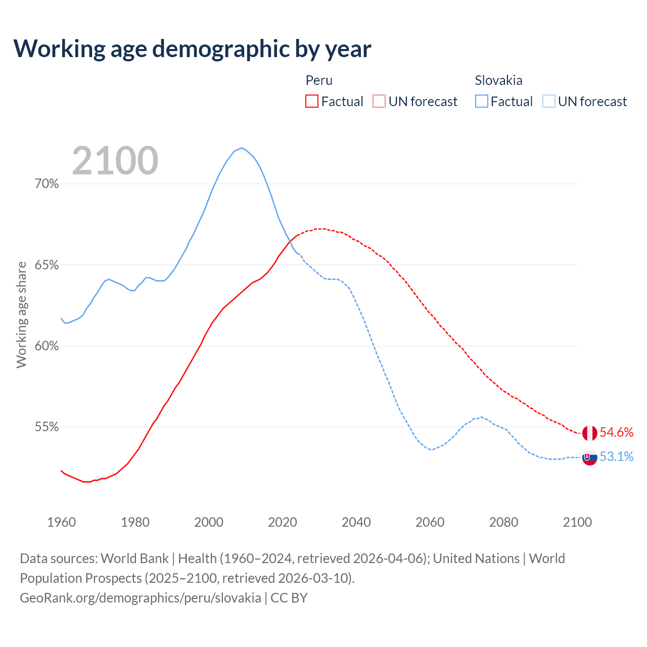 - Peru has 23.4M working age adults (aged 15-64) vs 3.52M in Slovakia.