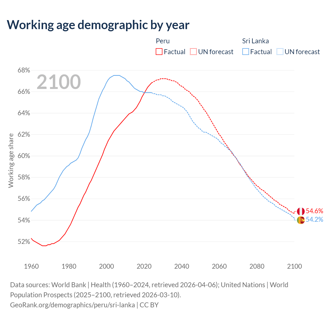 - Peru has 23.4M working age adults (aged 15-64) vs 14.6M in Sri Lanka.