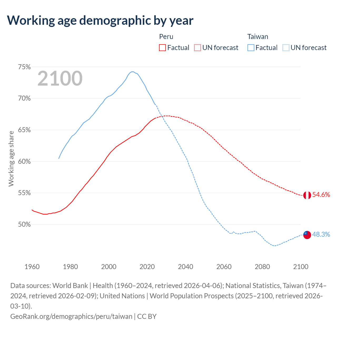 - Peru has 23.4M working age adults (aged 15-64) vs 16.1M in Taiwan.