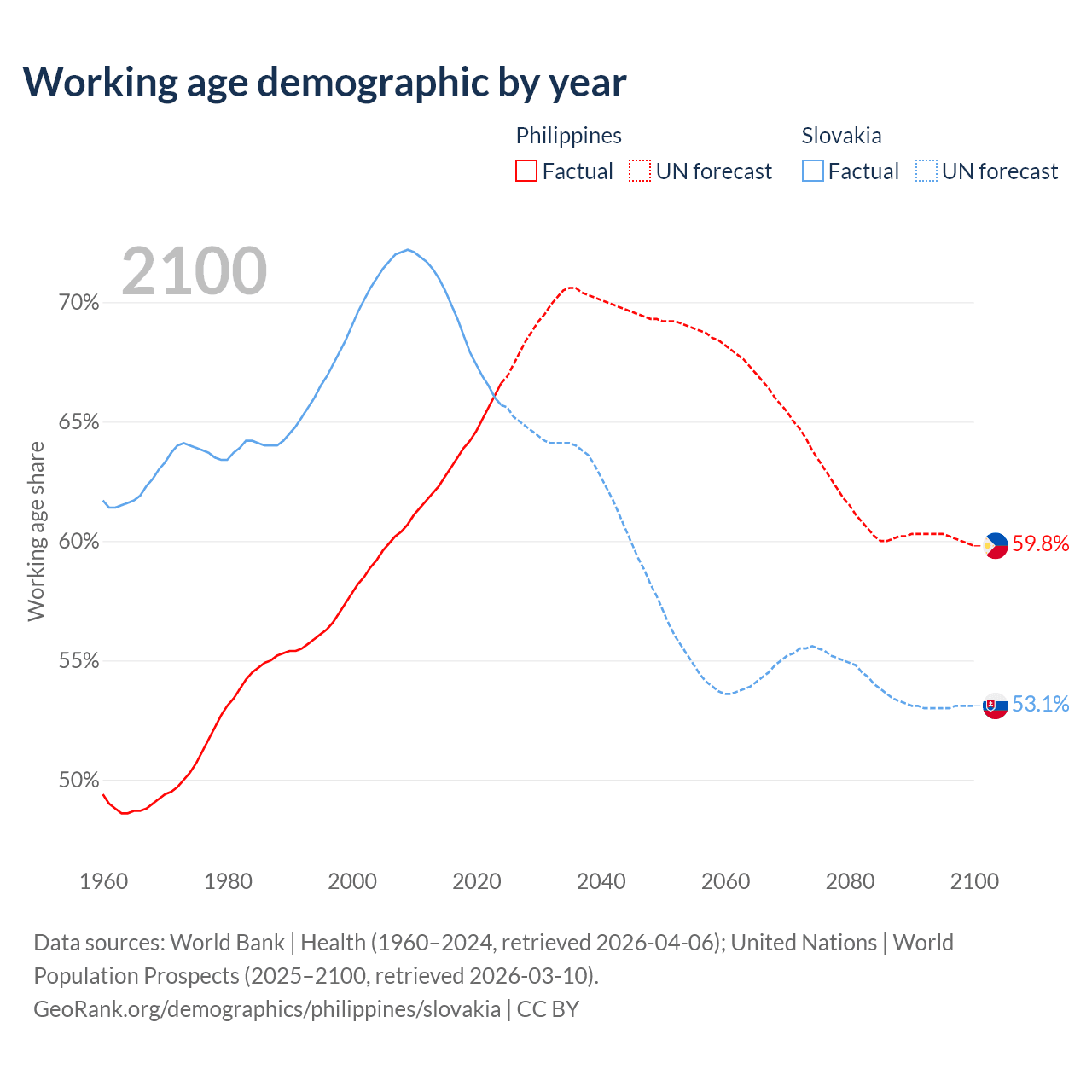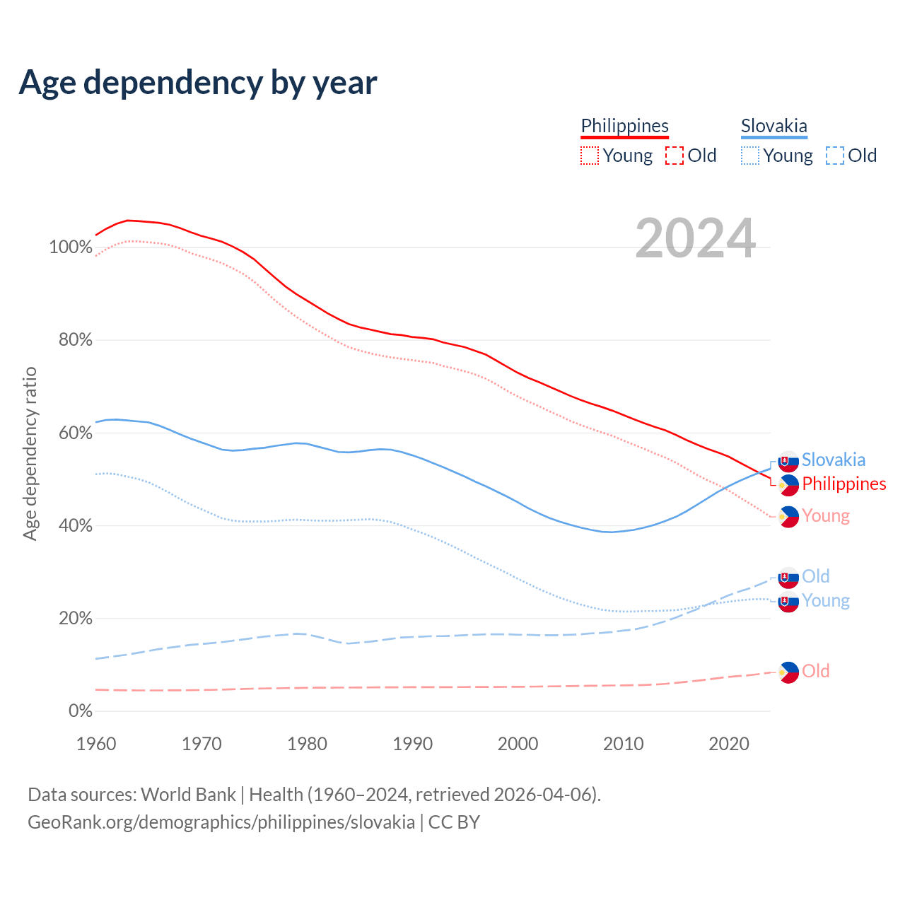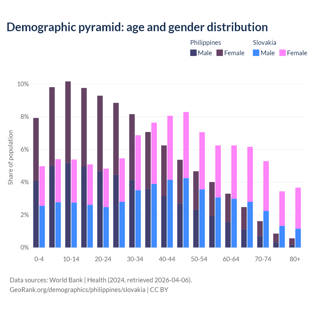 - The share of old-age demographic (65+) in the Philippines is 5.49% vs 18.5% in Slovakia.