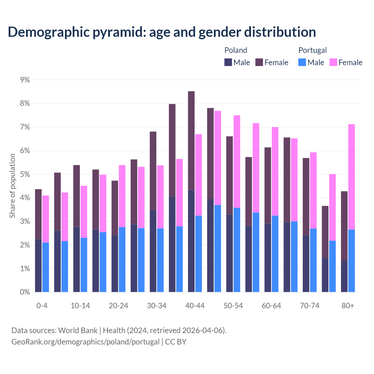 Demographics of Poland compared to Portugal: