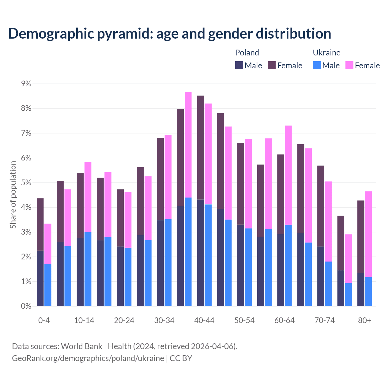 - As of 2026, the population of Poland is 35.8M vs 40.1M in Ukraine.