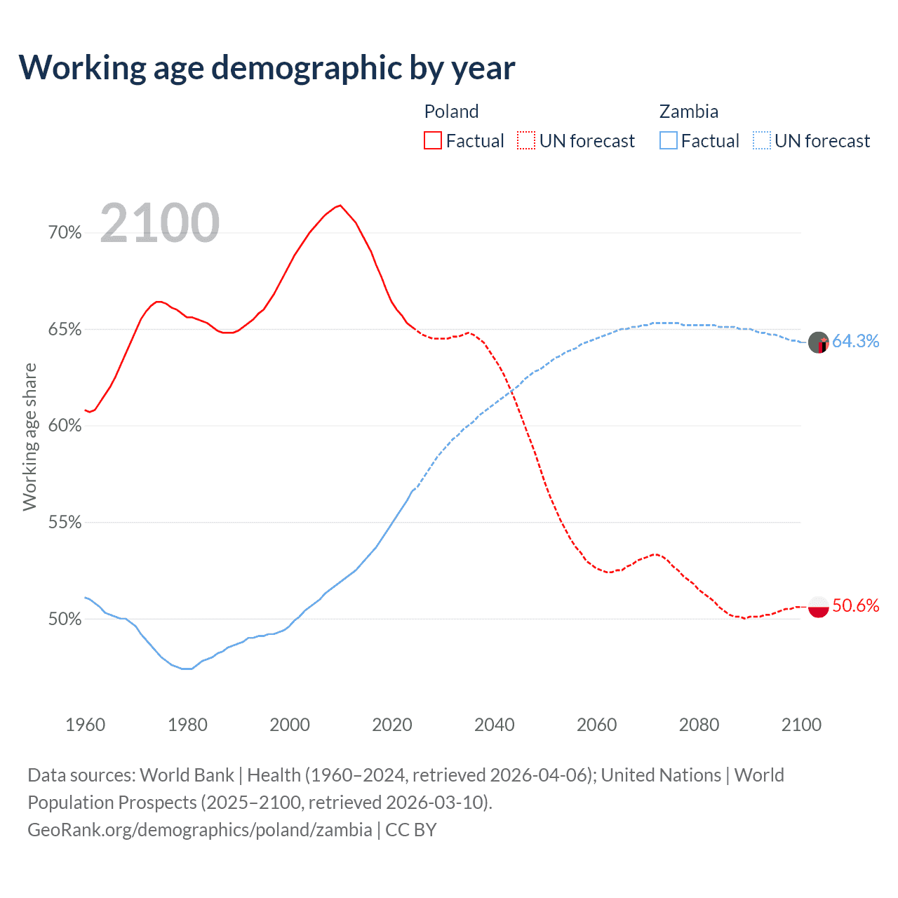 - Poland has 23.3M working age adults (aged 15-64) vs 12.8M in Zambia.