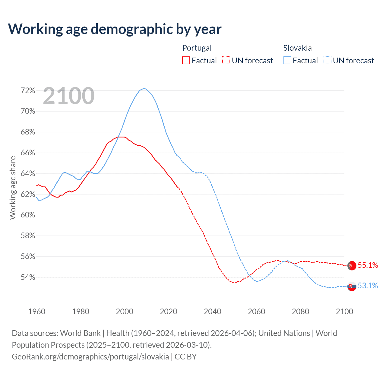 - Portugal has 6.68M working age adults (aged 15-64) vs 3.52M in Slovakia.