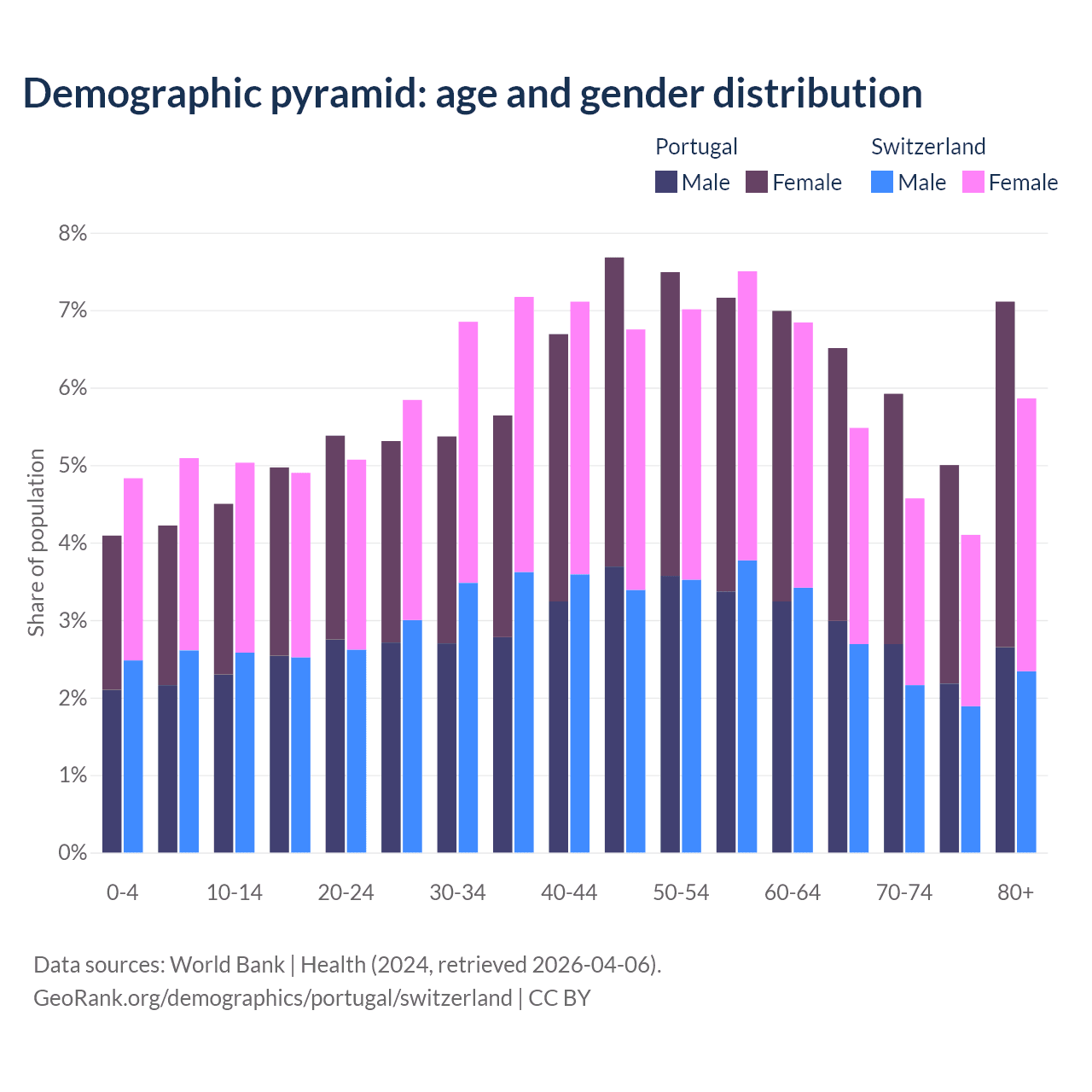 Demographics of Portugal compared to Switzerland: