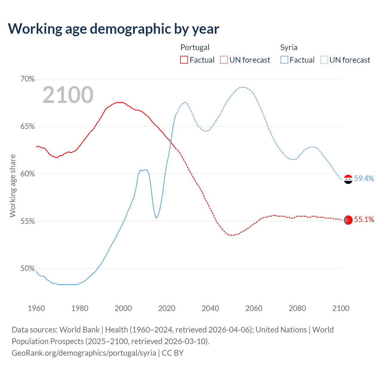 - Portugal has 6.68M working age adults (aged 15-64) vs 17.7M in Syria.
