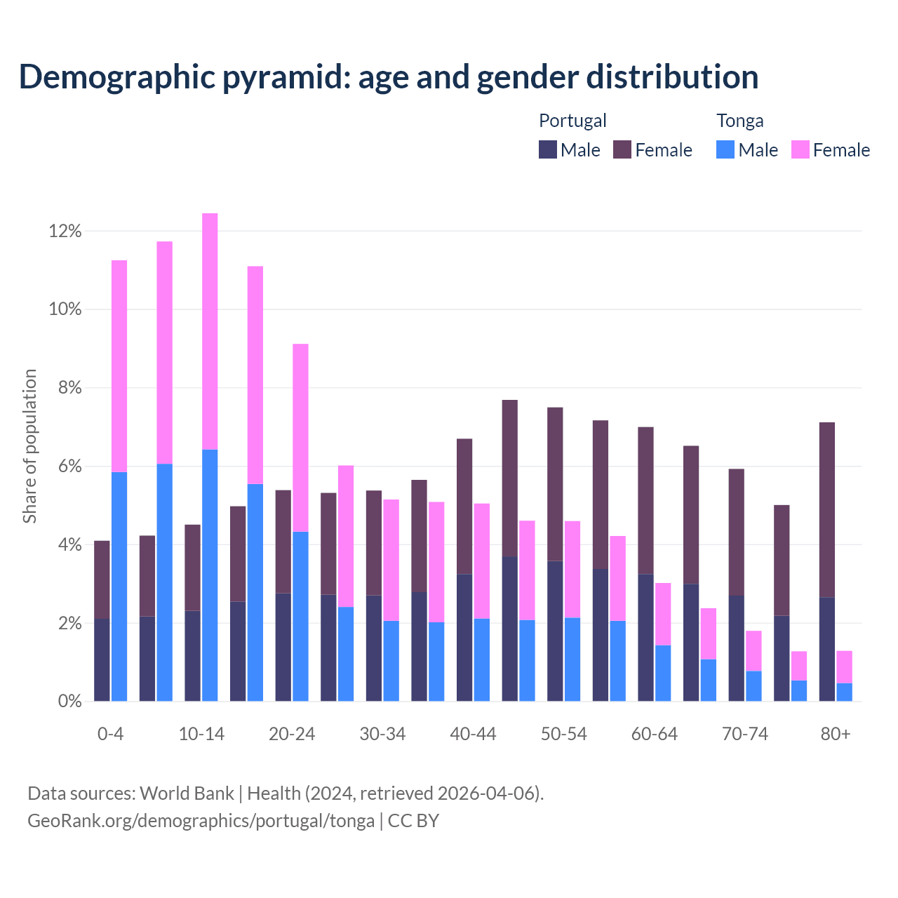 Demographics of Portugal compared to Tonga: