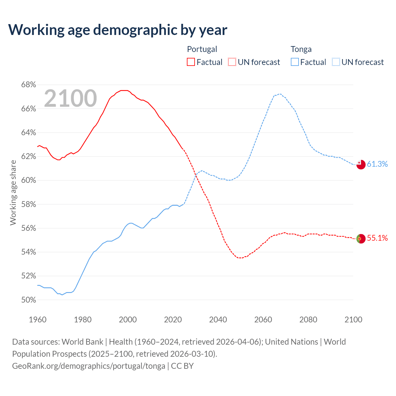 - Portugal has 6.68M working age adults (aged 15-64) vs 59.8K in Tonga.