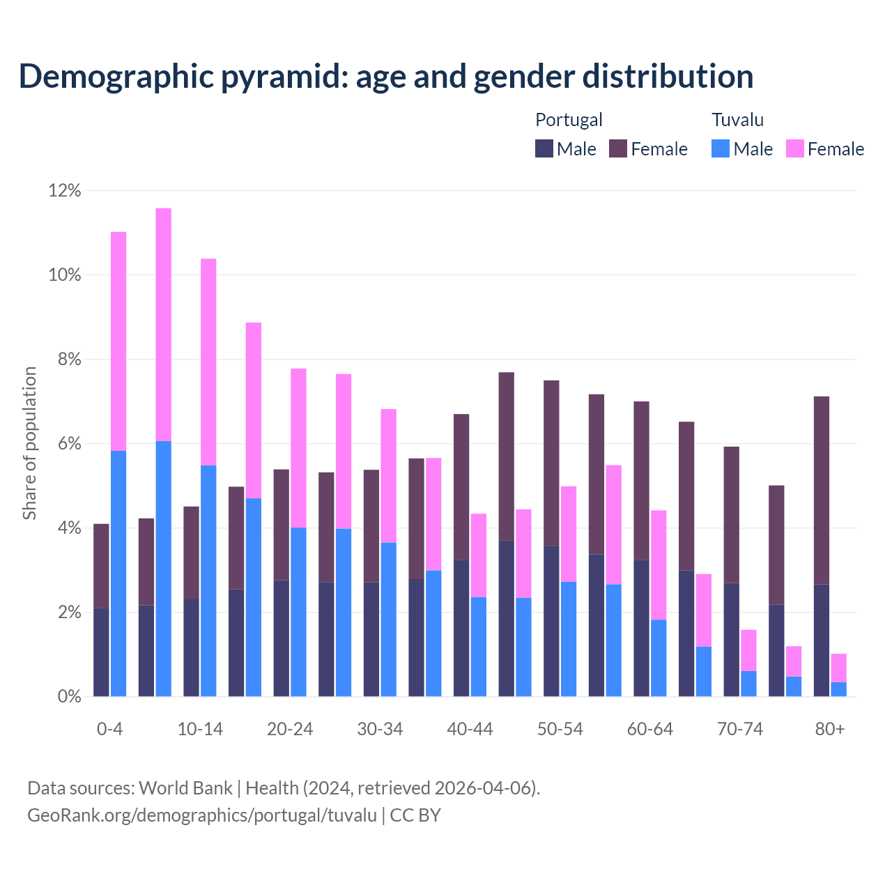 Demographics of Portugal compared to Tuvalu: