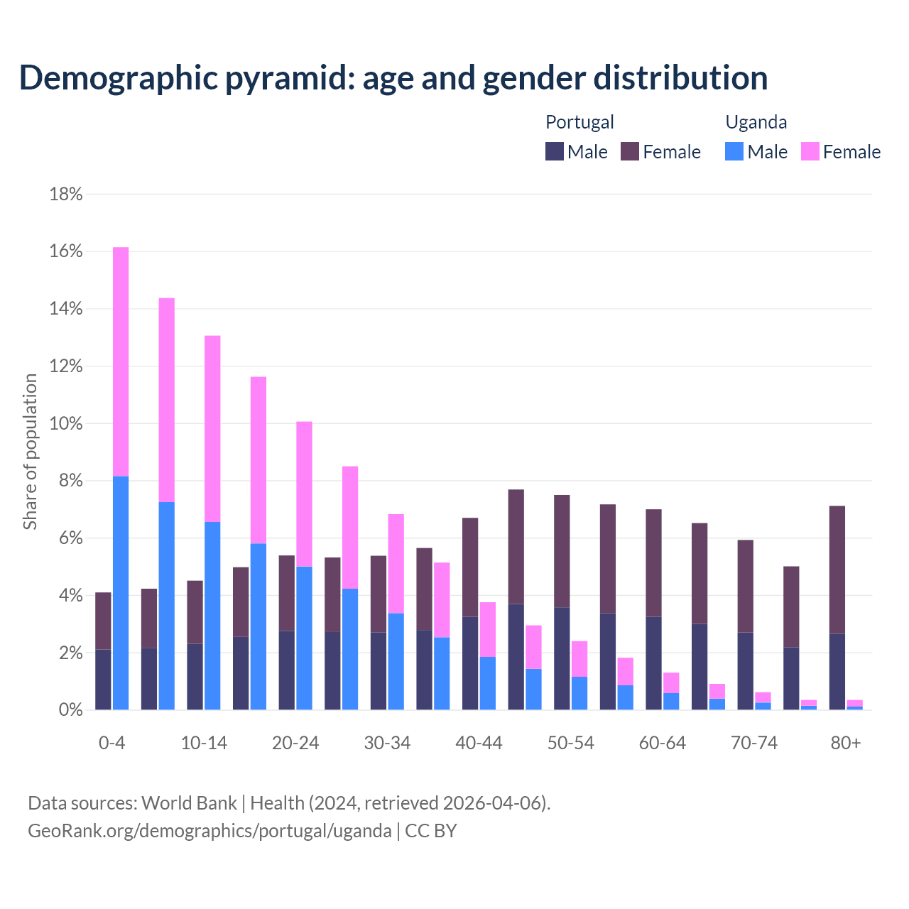 Demographics of Portugal compared to Uganda: