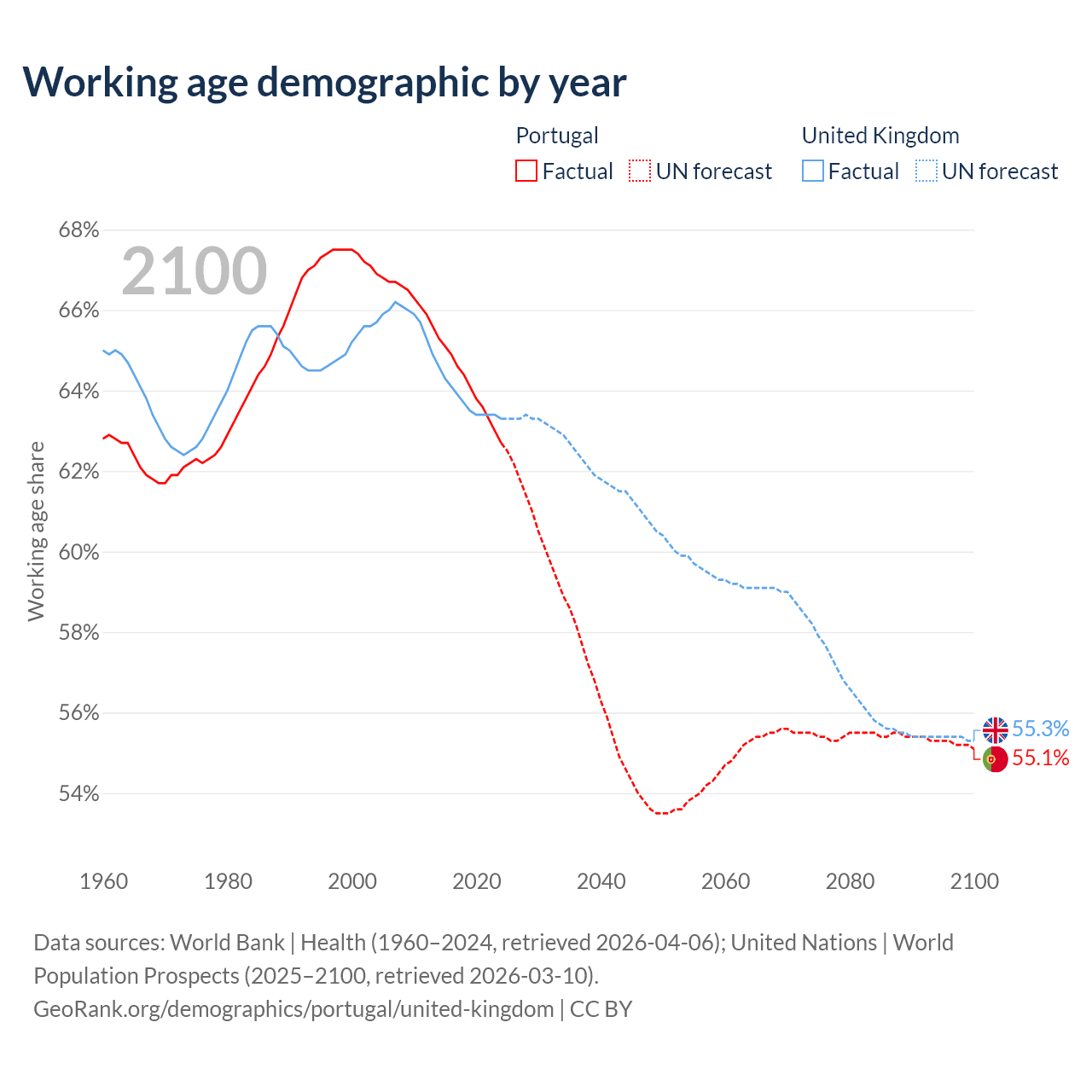- Portugal has 6.68M working age adults (aged 15-64) vs 44.4M in the United Kingdom.