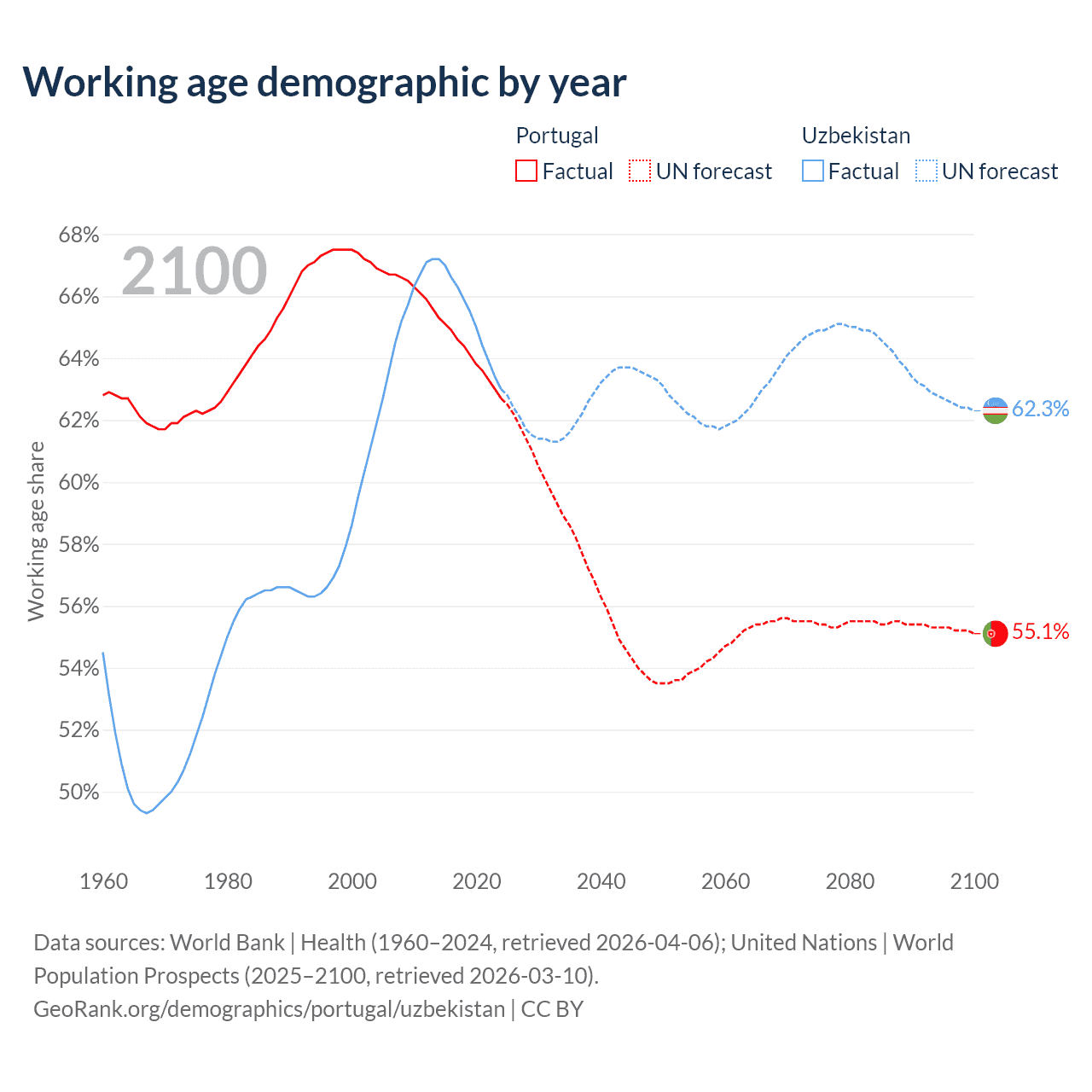 - Portugal has 6.68M working age adults (aged 15-64) vs 23.9M in Uzbekistan.