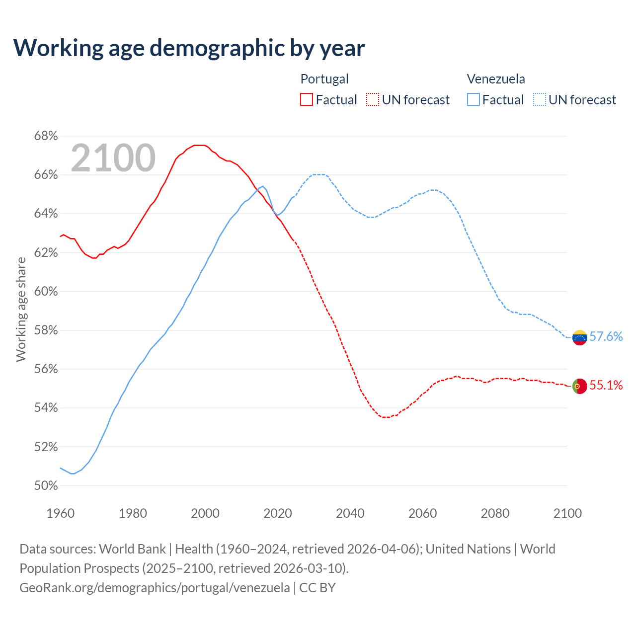 - Portugal has 6.68M working age adults (aged 15-64) vs 18.6M in Venezuela.