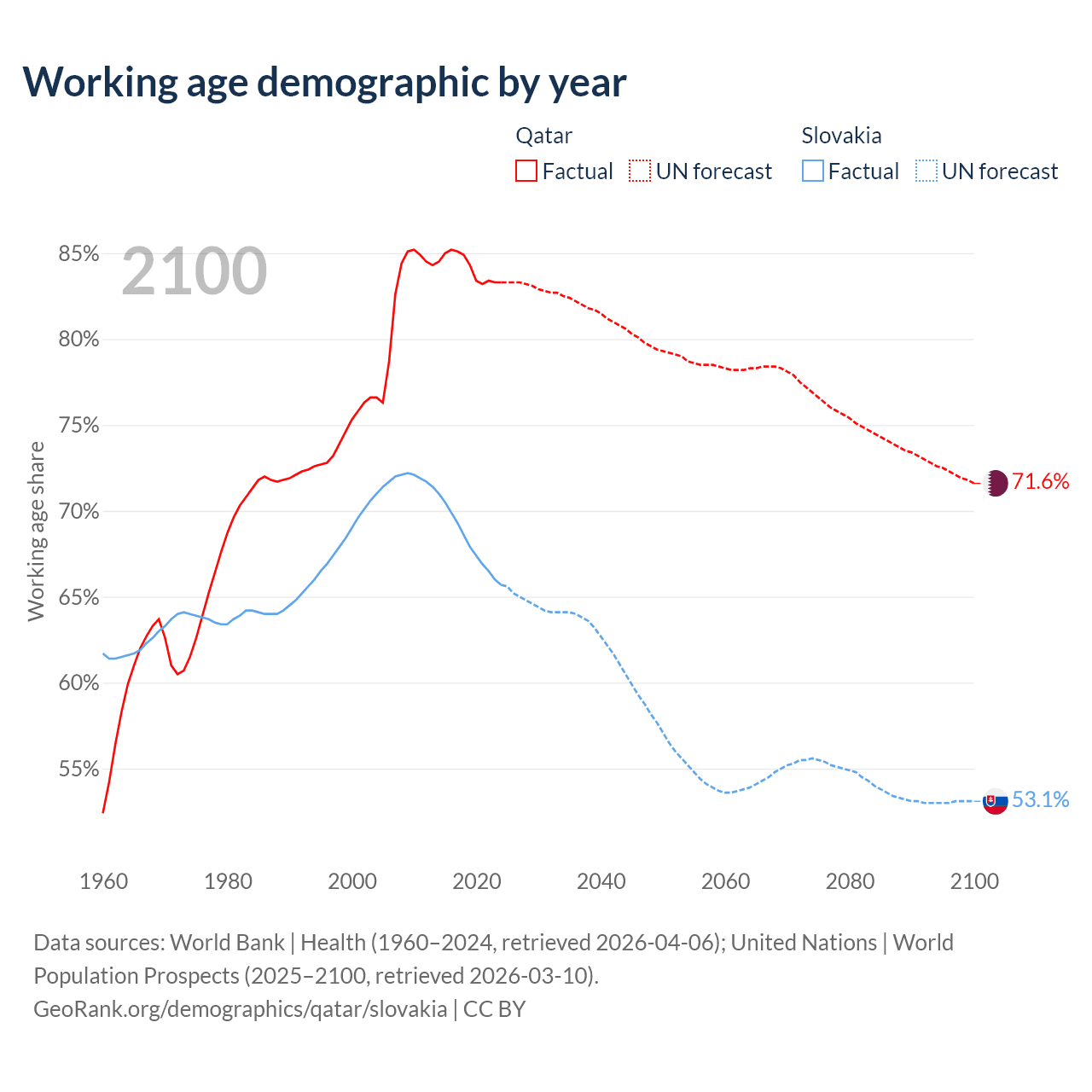 - Qatar has 2.5M working age adults (aged 15-64) vs 3.52M in Slovakia.