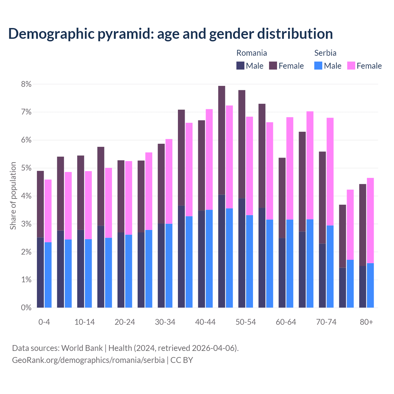 Demographics of Romania compared to Serbia: