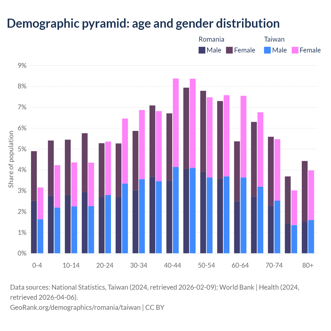 Demographics of Romania compared to Taiwan: