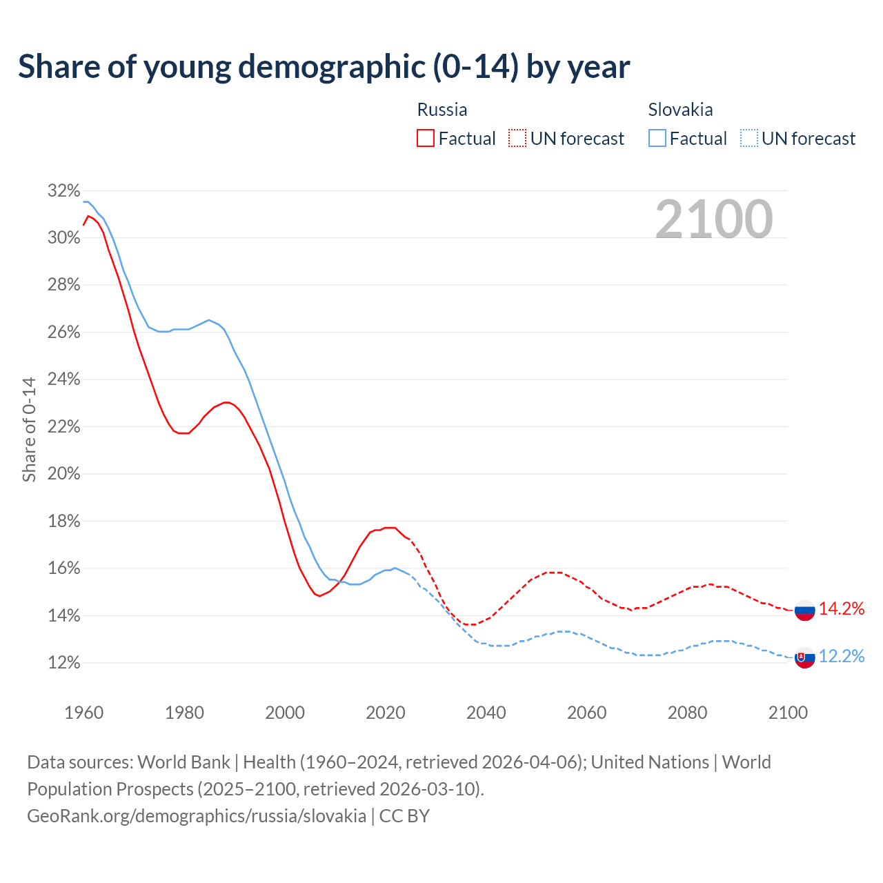 - As of 2026, the population of Russia is 142M vs 5.36M in Slovakia - 26.5 times difference.