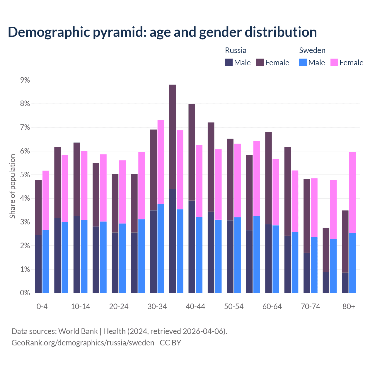 Demographics of Russia compared to Sweden: