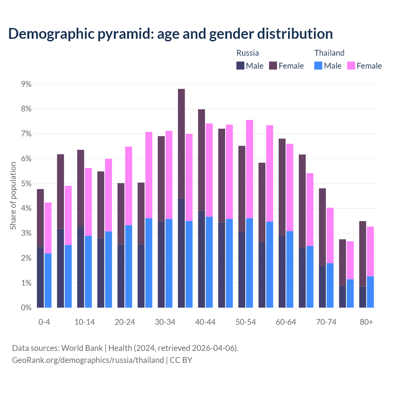 Demographics of Russia compared to Thailand: