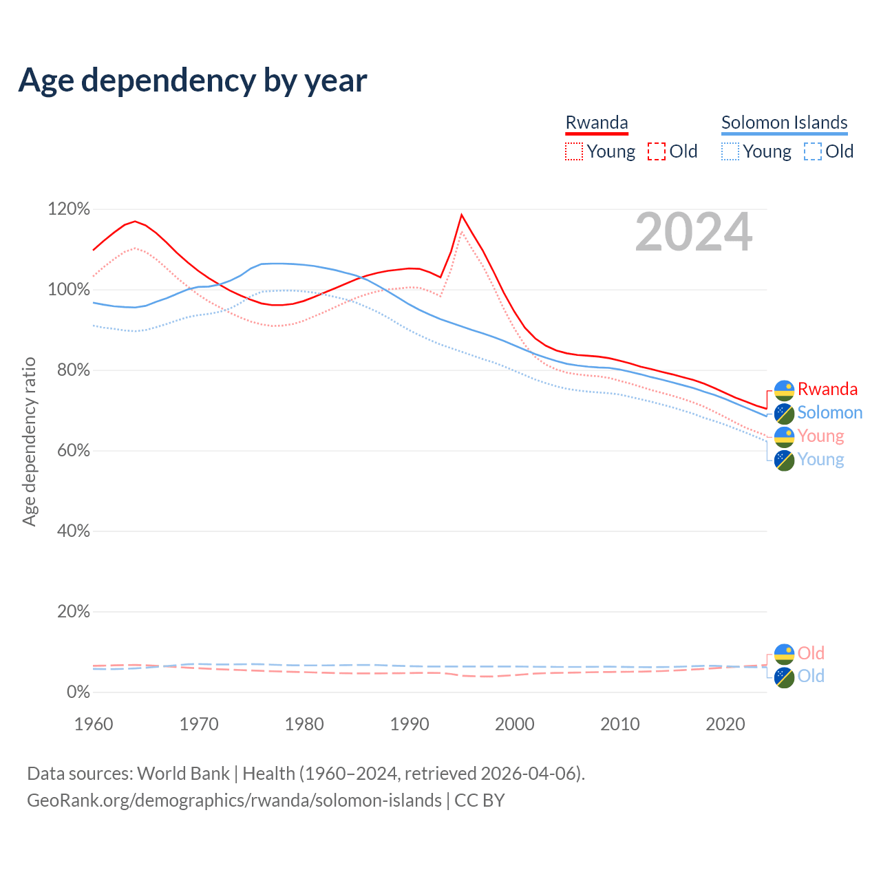 - The share of old-age demographic (65+) in Rwanda is 3.93% vs 3.64% in the Solomon Islands.