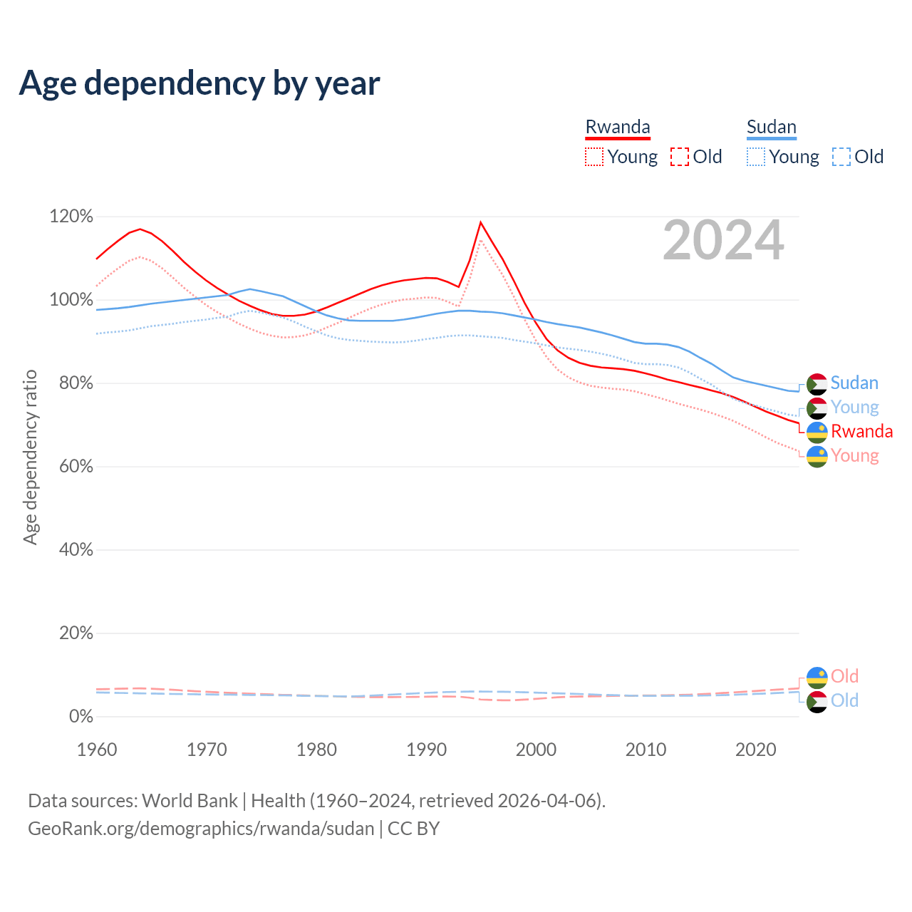 - The share of old-age demographic (65+) in Rwanda is 3.93% vs 3.3% in Sudan.
