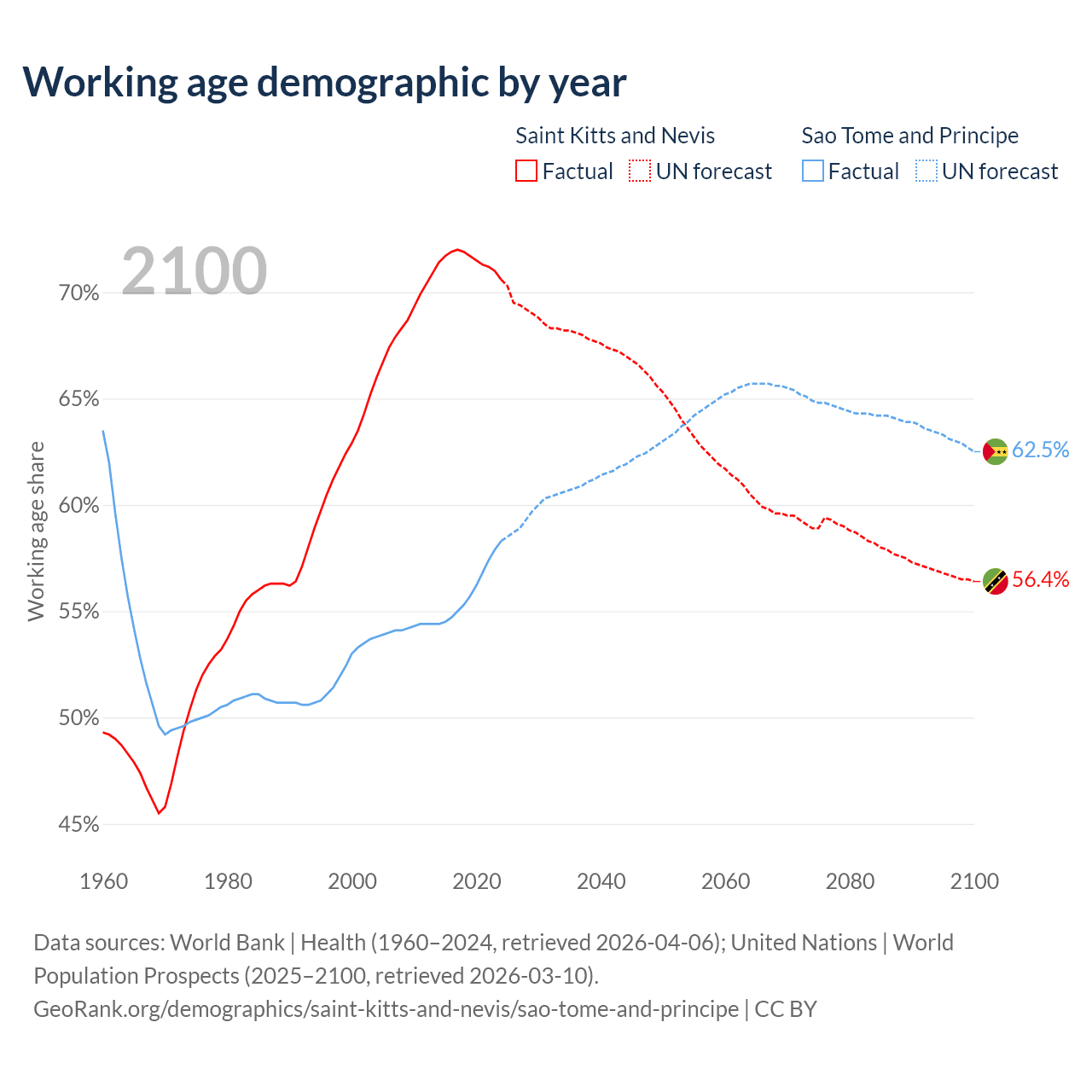- Saint Kitts and Nevis has 33.2K working age adults (aged 15-64) vs 144K in Sao Tome and Principe.