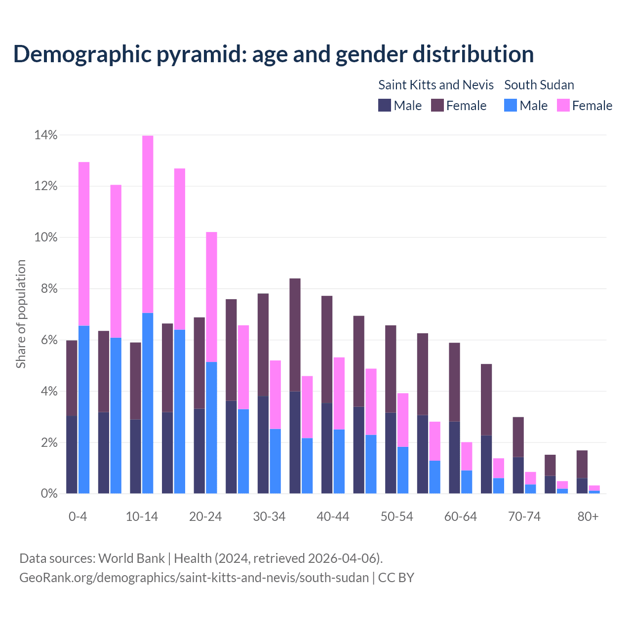 Demographics of Saint Kitts and Nevis compared to South Sudan: