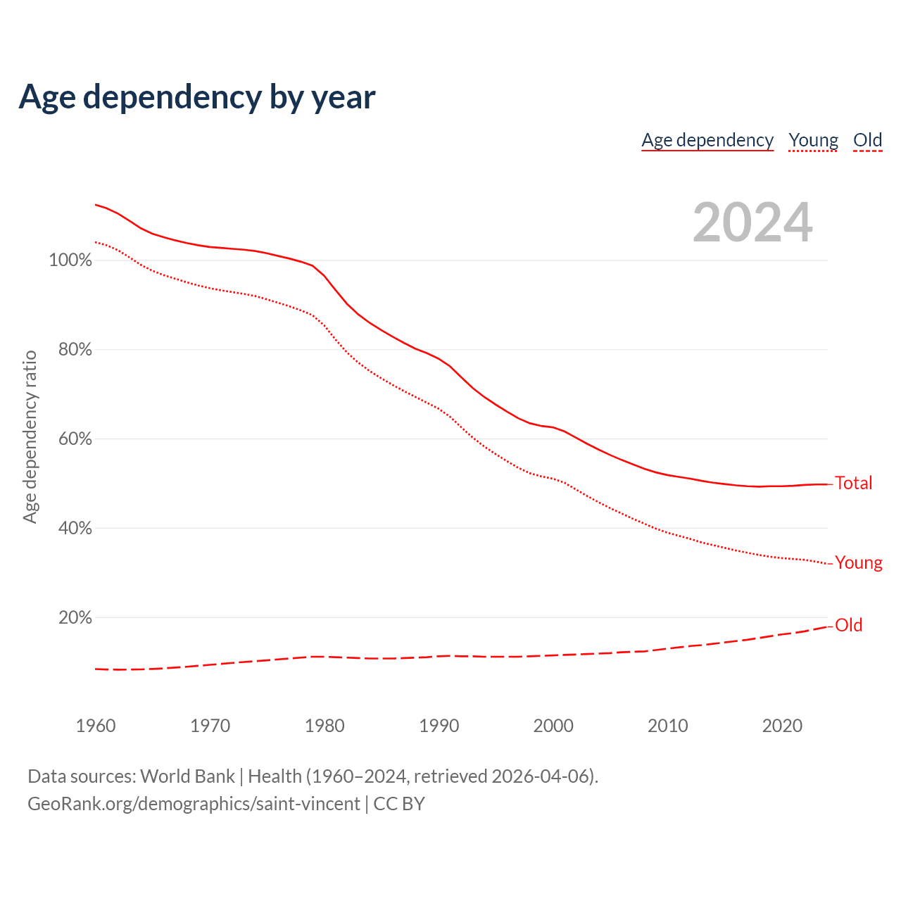 Data sources: World Bank | Health (1960–2024, retrieved 2026-04-06); U.S. Census Bureau (1960–2024, retrieved 2026-02-08).