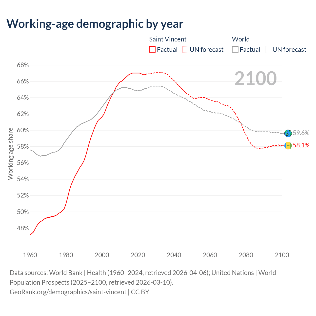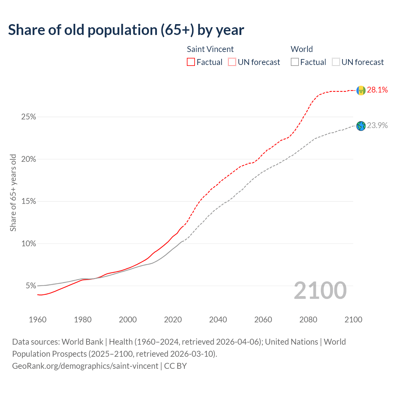 Median age in Saint Vincent, 1960–2100