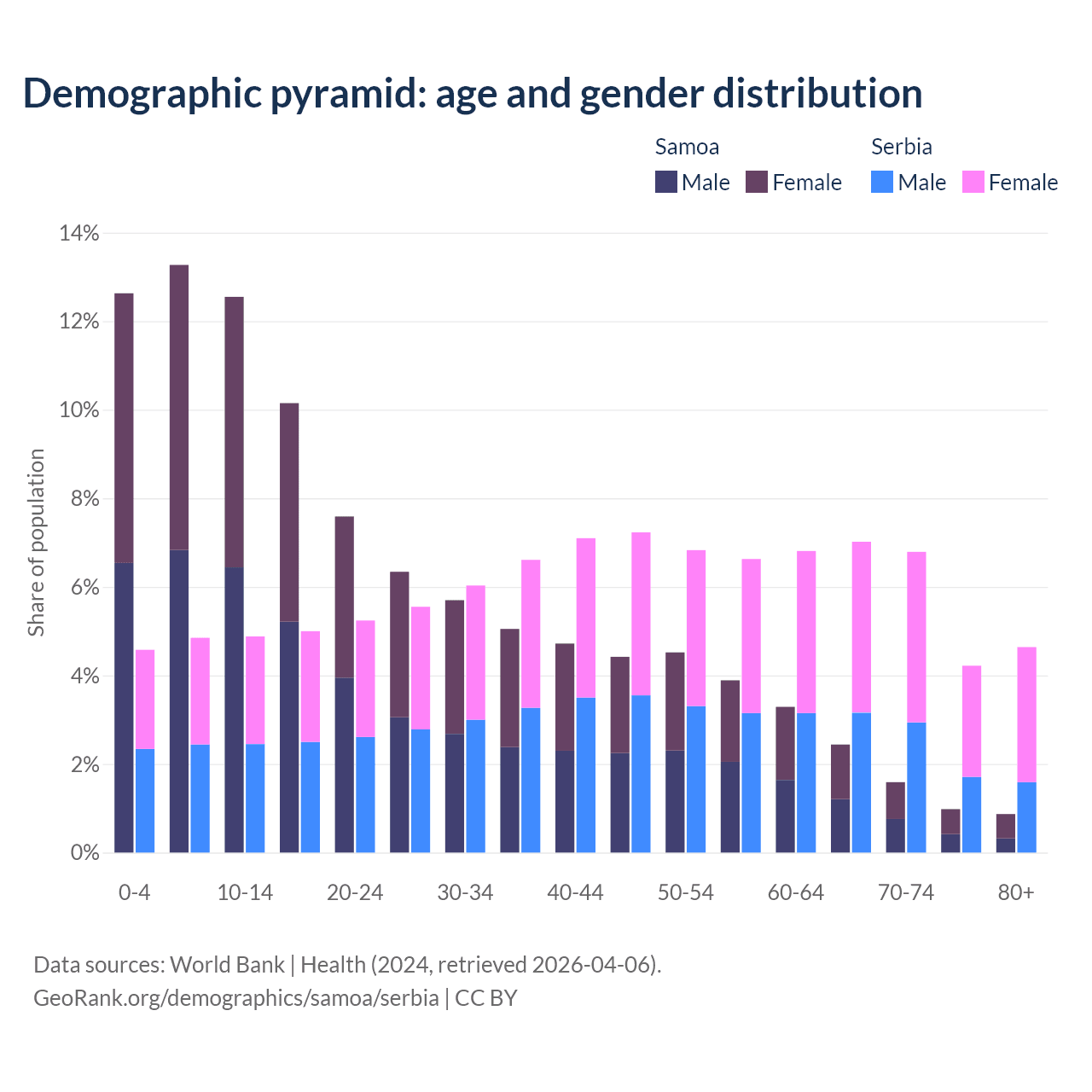 Demographics of Samoa compared to Serbia: