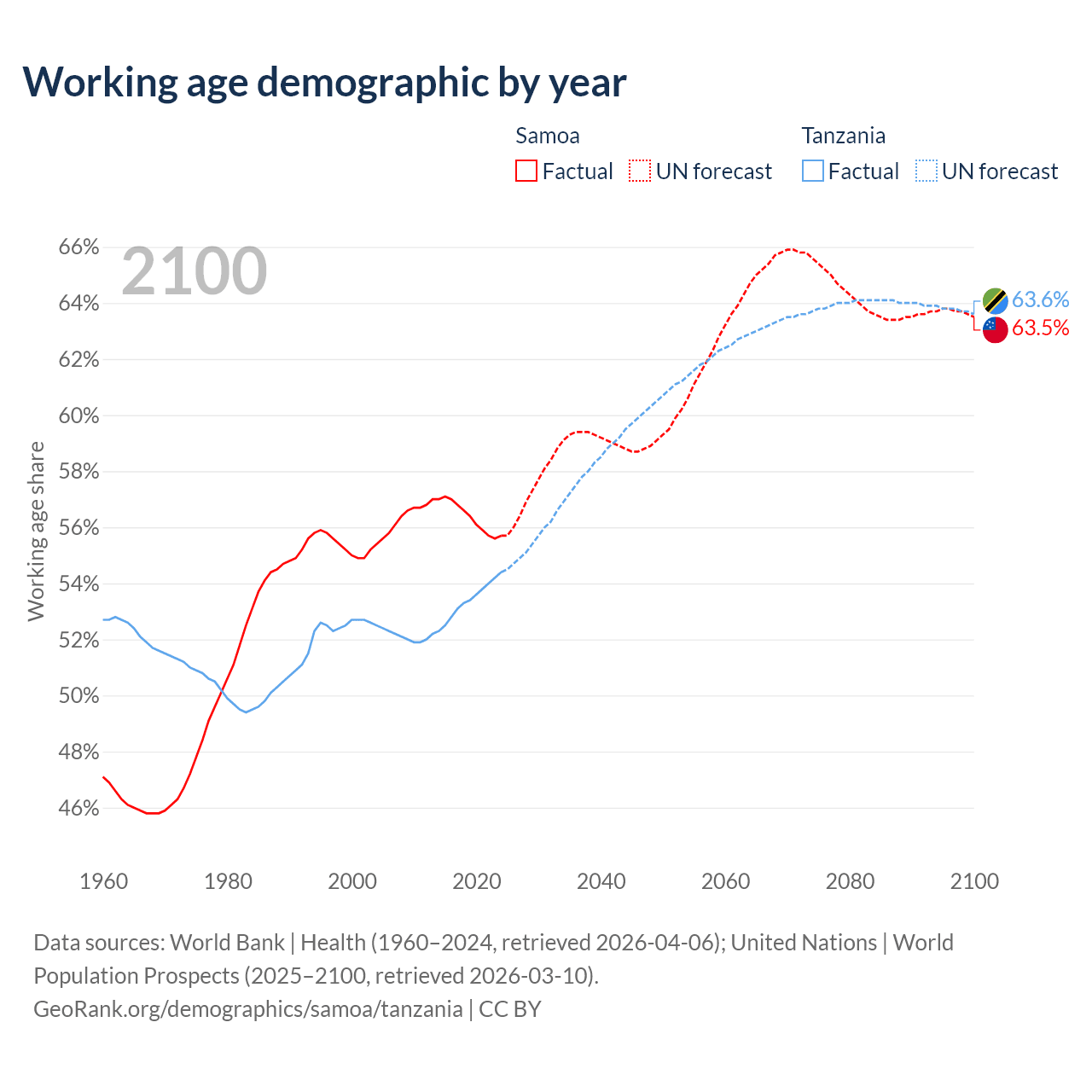 - Samoa has 123K working age adults (aged 15-64) vs 39.8M in Tanzania.