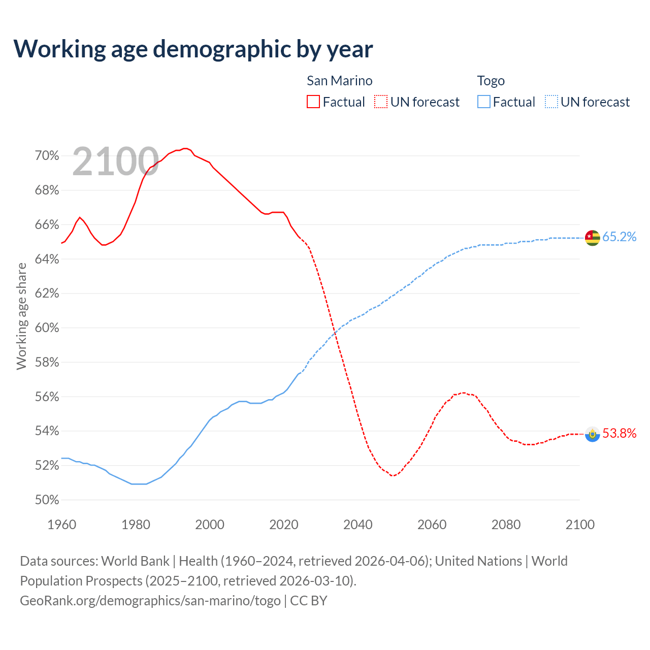 - San Marino has 22.2K working age adults (aged 15-64) vs 5.72M in Togo.
