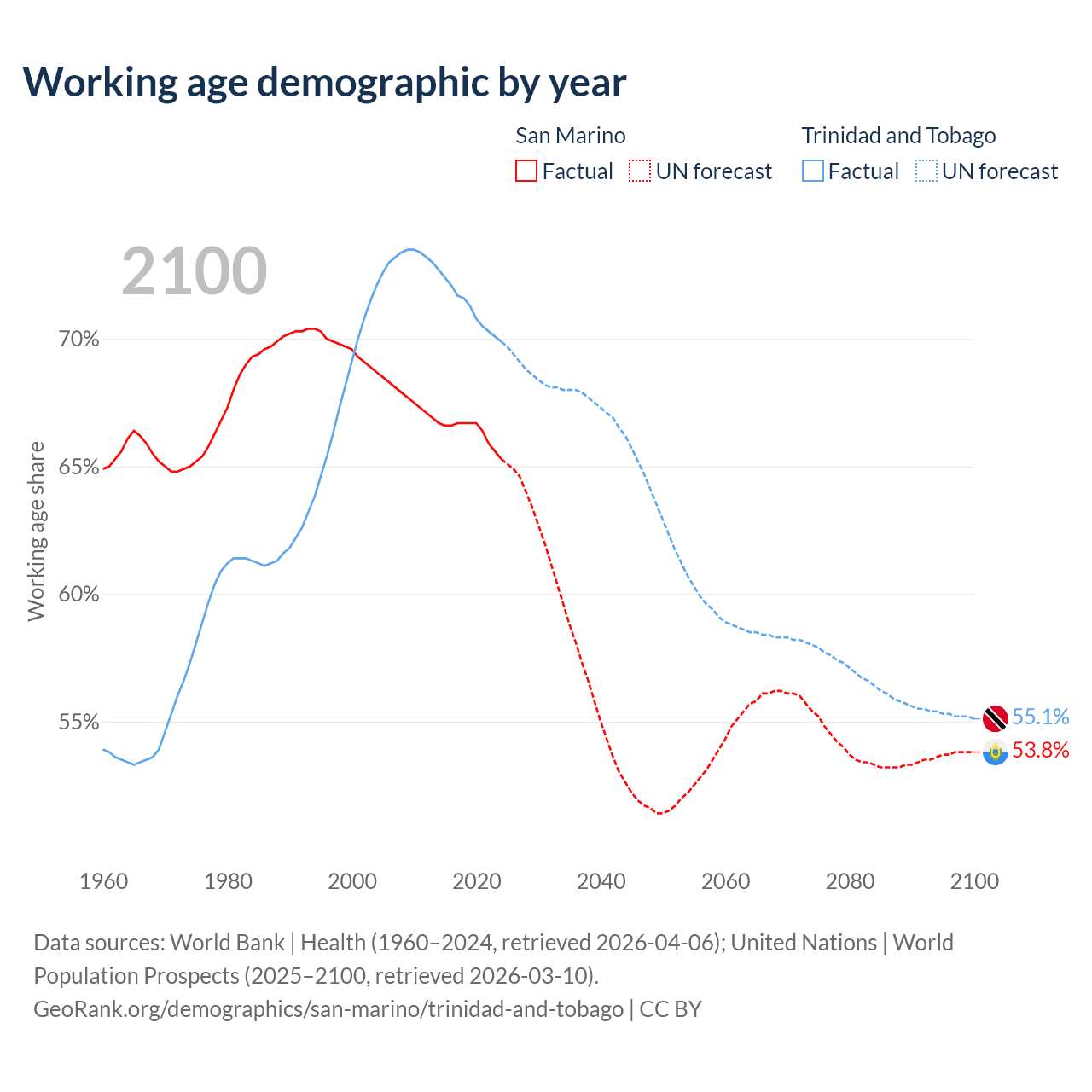 - San Marino has 22.2K working age adults (aged 15-64) vs 960K in Trinidad and Tobago.