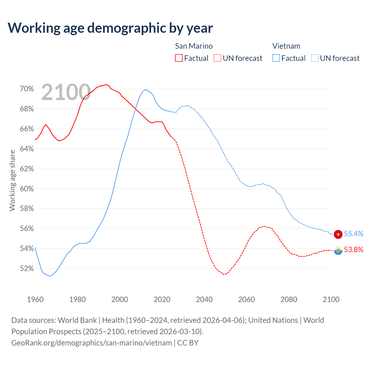 - San Marino has 22.2K working age adults (aged 15-64) vs 69.3M in Vietnam.
