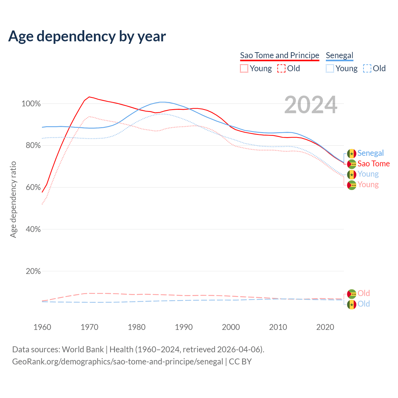 The share of older people aged 65 and over is 3.9% in Sao Tome and Principe and 3.62% in Senegal. Life expectancy in Sao Tome and Principe compared to Senegal .